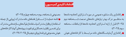 اگر اتحادیه اروپا بخواهد از پتانسیل کامل هوش مصنوعی بهره ببرد، دسترسی به داده‌های قابل اعتماد و سازمان‌یافته ضروری است. کمیسیون در نیمه دوم سال ۲۰۲۵ با یک استراتژی جدید اتحادیه داده به این موضوع خواهد پرداخت تا داده‌های بیشتری را برای پشتیبانی از توسعه و نوآوری هوش مصنوعی در دسترس قرار دهد.